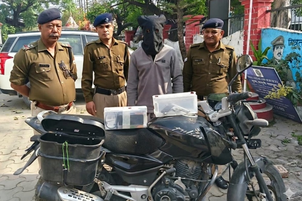हल्द्वानी। वरिष्ठ पुलिस अधीक्षक नैनीताल डॉ. मंजूनाथ टी.सी. के निर्देशानुसार जनपद में अपराध नियंत्रण और चोरी की घटनाओं के खुलासे के लिए चलाए जा रहे अभियान के तहत हल्द्वानी पुलिस को बड़ी सफलता मिली है। पुलिस ने एक शातिर अंतर्राज्यीय चोर को चोरी की मोटरसाइकिल, चार मोबाइल फोन और अवैध असलहे के साथ गिरफ्तार किया है।