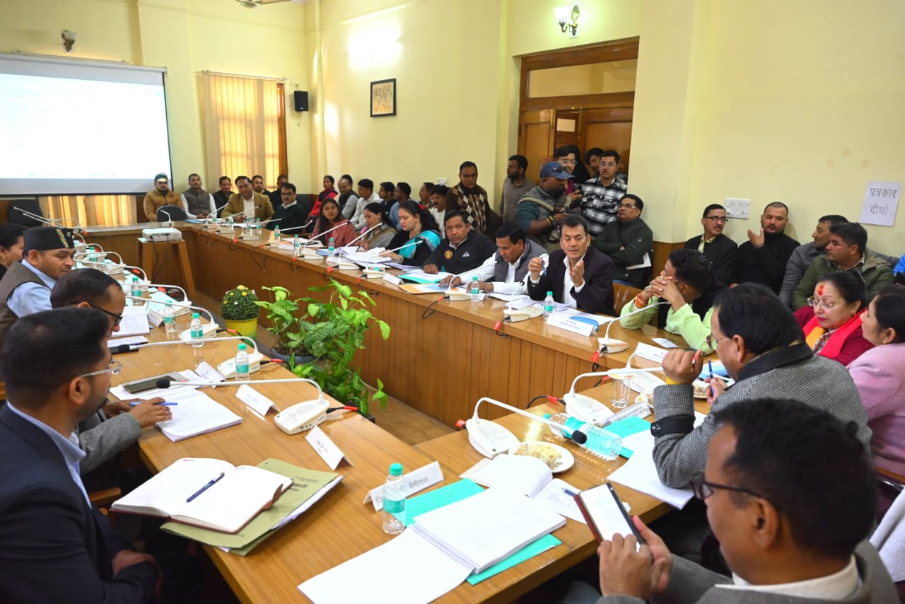 सर्किट हाउस काठगोदाम में आयोजित बैठक में पीएमजीएसवाई, लोनिवि, किसान सम्मान निधि, प्रधानमंत्री आवास योजना, मातृ वंदना योजना, उज्ज्वला योजना, स्वच्छ भारत मिशन, प्रधानमंत्री कृषि सिंचाई योजना, राष्ट्रीय स्वास्थ्य मिशन, समग्र शिक्षा, रोपवे परियोजनाएँ, प्रधानमंत्री मत्स्य योजना और पीएम सूर्य घर योजना समेत कई योजनाओं की समीक्षा की गई।
