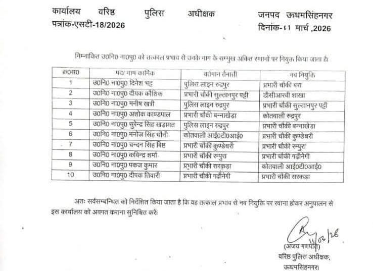KumaunNewsUdham Singh NagarUttarakhand इस ज़िले मे हुए उपनिरीक्षको के स्थानांतरण उत्तराखंड एक्स्प्रेस न्यूज़March 12, 2026March 12, 2026 Spread the love Spread the love